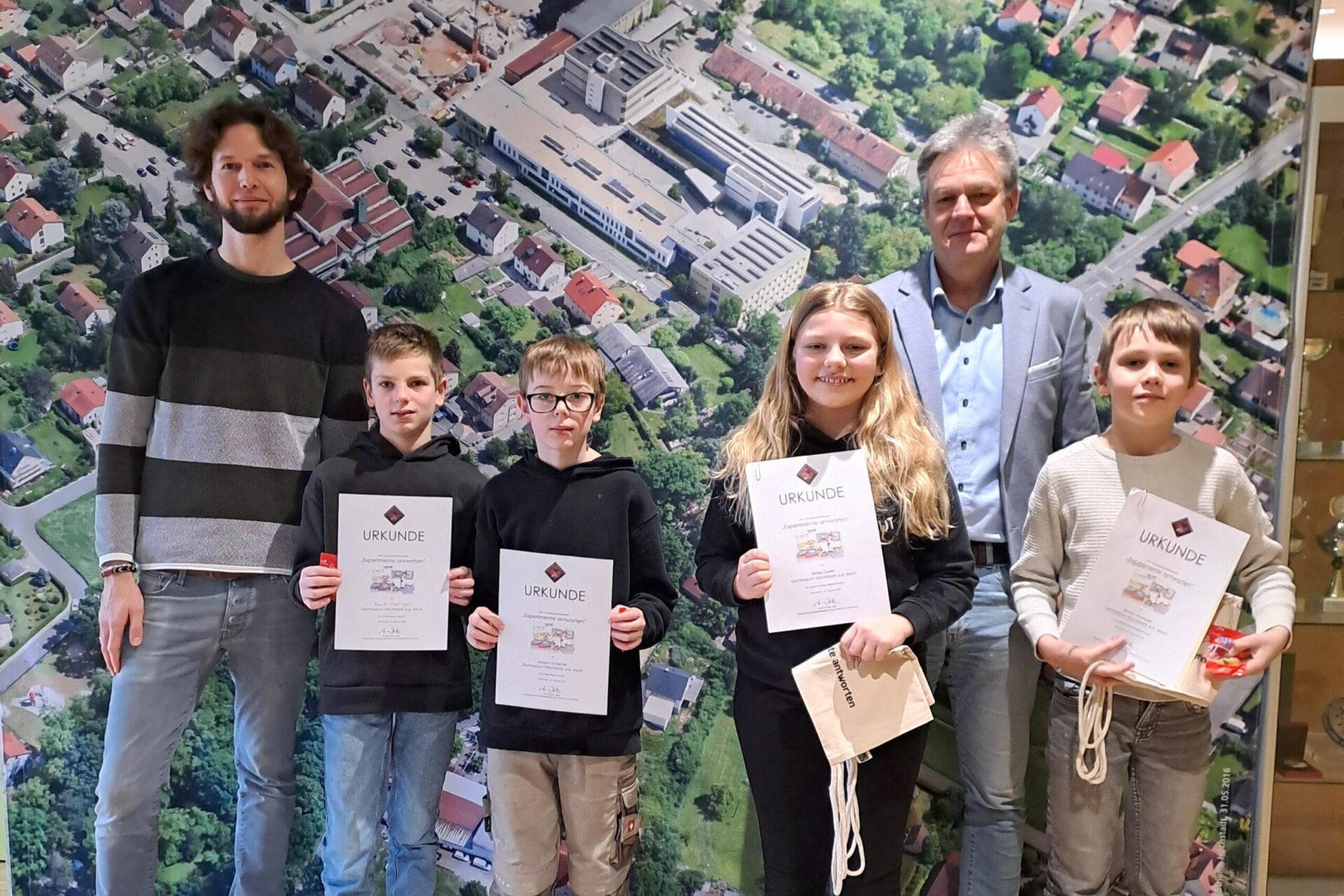 Unsere Schulfamilie gratuliert den Teilnehmenden der ersten Runde des Landeswettbewerbs Experimente antworten zu großen Erfolgen. Es ist eine erfreuliche und liebgewonnene Tradition, dass sich junge, engagierte Nachwuchsforscherinnen und -forscher unseres Gymnasiums den herausfordernden Experimentieraufgaben dieses freiwilligen Wettbewerbs stellen. In diesem Schuljahr nahmen drei Schüler aus den 5. Klassen sowie eine Schülerin aus der 6. Klasse teil und zeigten dabei großes Interesse an naturwissenschaftlichen Fragestellungen. Mit Neugier, Kreativität und Durchhaltevermögen bearbeiteten die Teilnehmenden die Aufgaben der ersten Runde in großen Teilen selbstständig und mit hoher Sorgfalt. Gespannt blicken wir nun auf die beiden noch ausstehenden Wettbewerbsrunden dieses Schuljahres, für die wir weiterhin viel Freude am Experimentieren und viel Erfolg wünschen. Wer sich noch zur Teilnahme entschließt, kann wie jedes Jahr auch in der 2. oder 3. Runde einsteigen; Interessierte können sich hierzu jederzeit gerne bei ihren NuT-Lehrkräften melden.